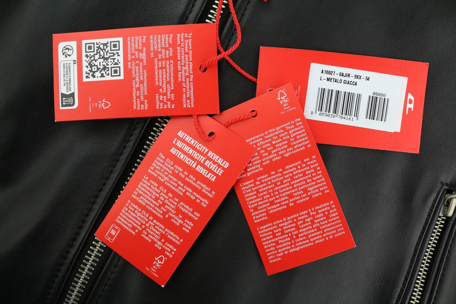 DIESEL L-Metalo Men Jacket 54 Black Sheepskin Leather Zipper Logo RRP€795