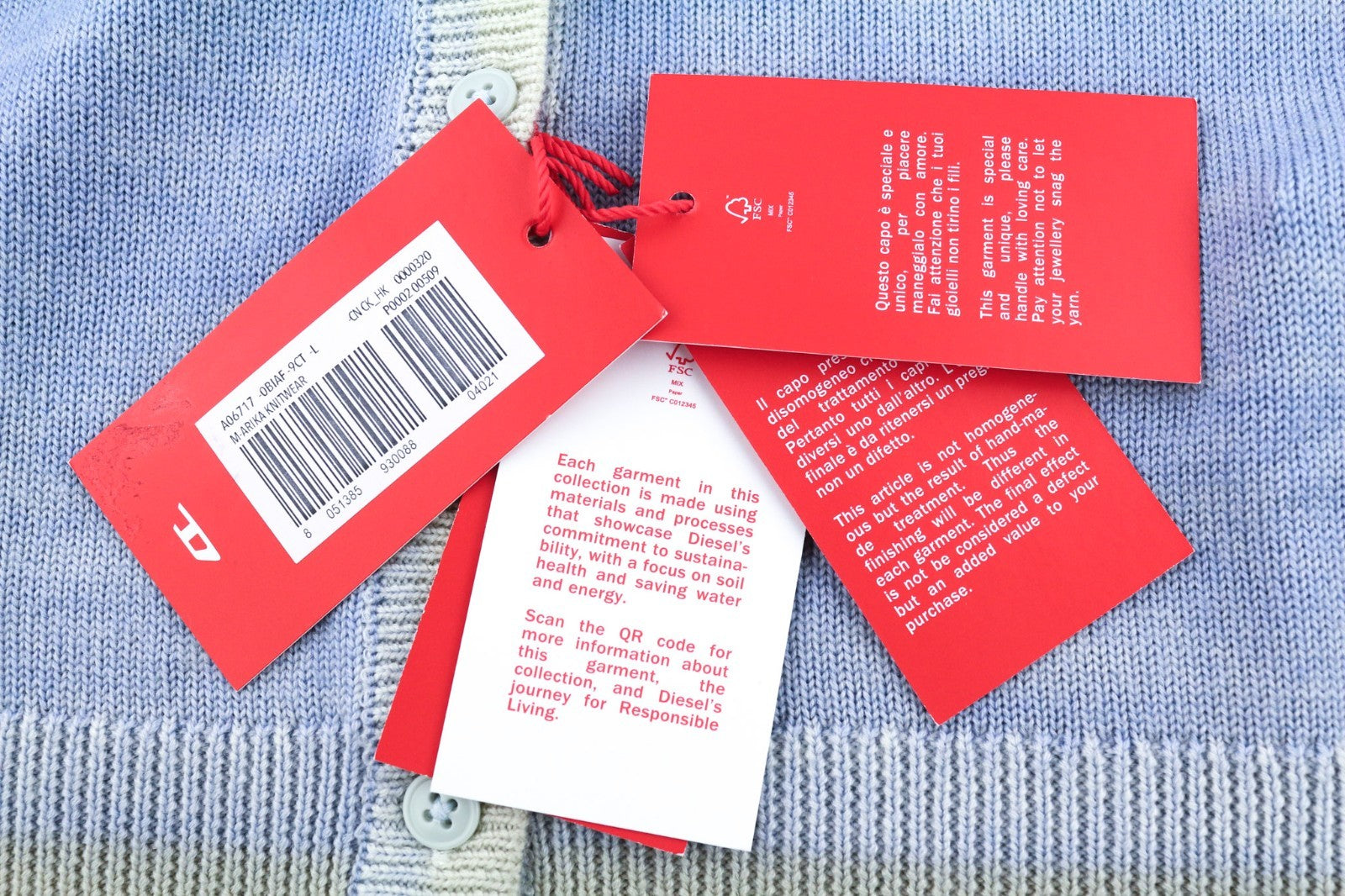 DIESEL M-Arika Women Jumper L Light Blue Washed Wool Knit Cardigan Button RRP30