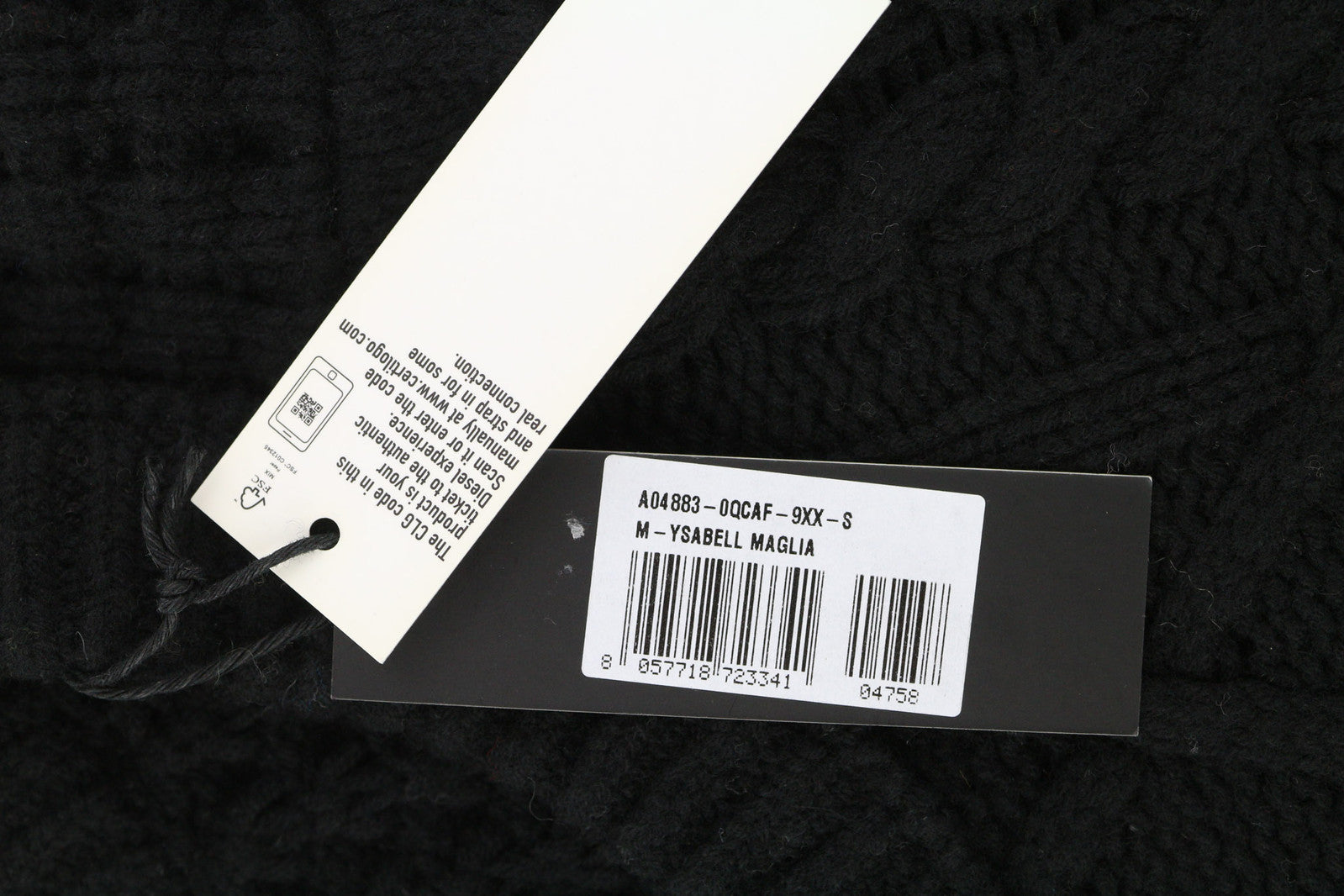 DIESEL M-Ysabell Women Jumper S Pullover Wool Cable Knit Crew Neck Black RRP€275