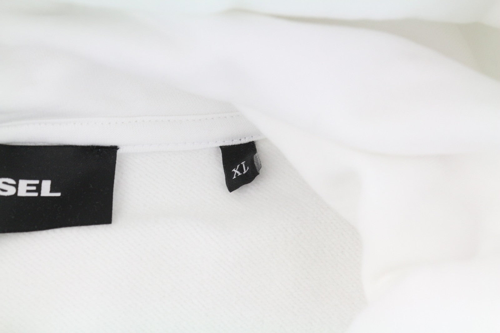 DIESEL Men Hoodie XL White Embroidered Front Logo Hooded Long Sleeve Pullover