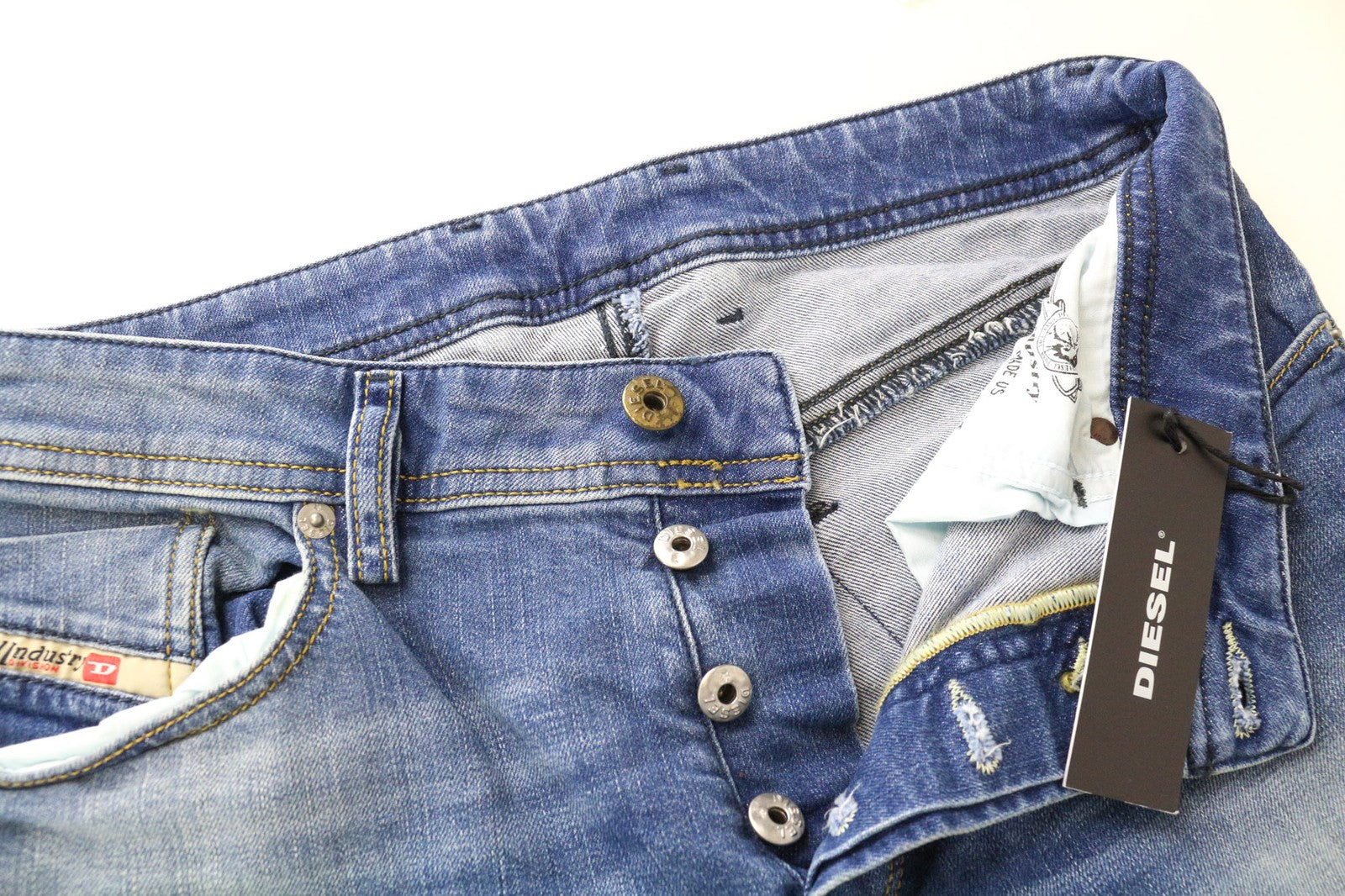 DIESEL Men Jeans W28 Straight Fit Washed Blue 5-Pocket Button Casual