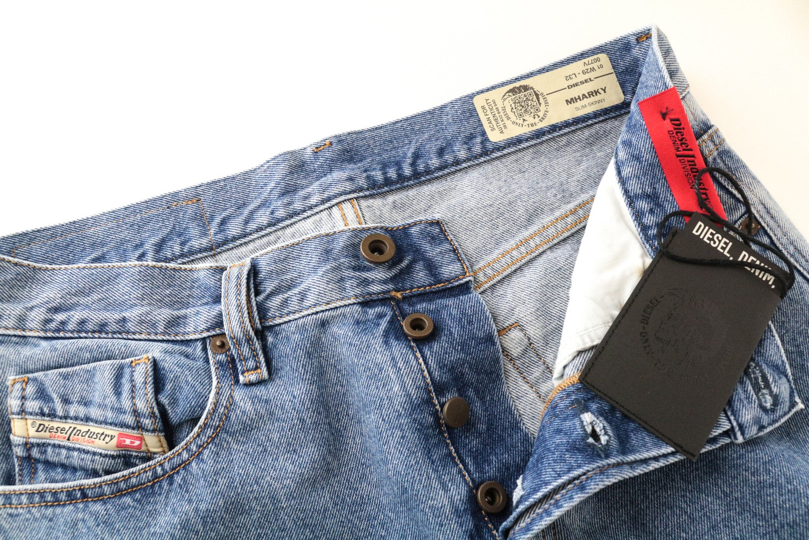 DIESEL Mharky 0077V W29/L32 Bleached Blue Jeans Slim Cotton 5-Pocket for Men's