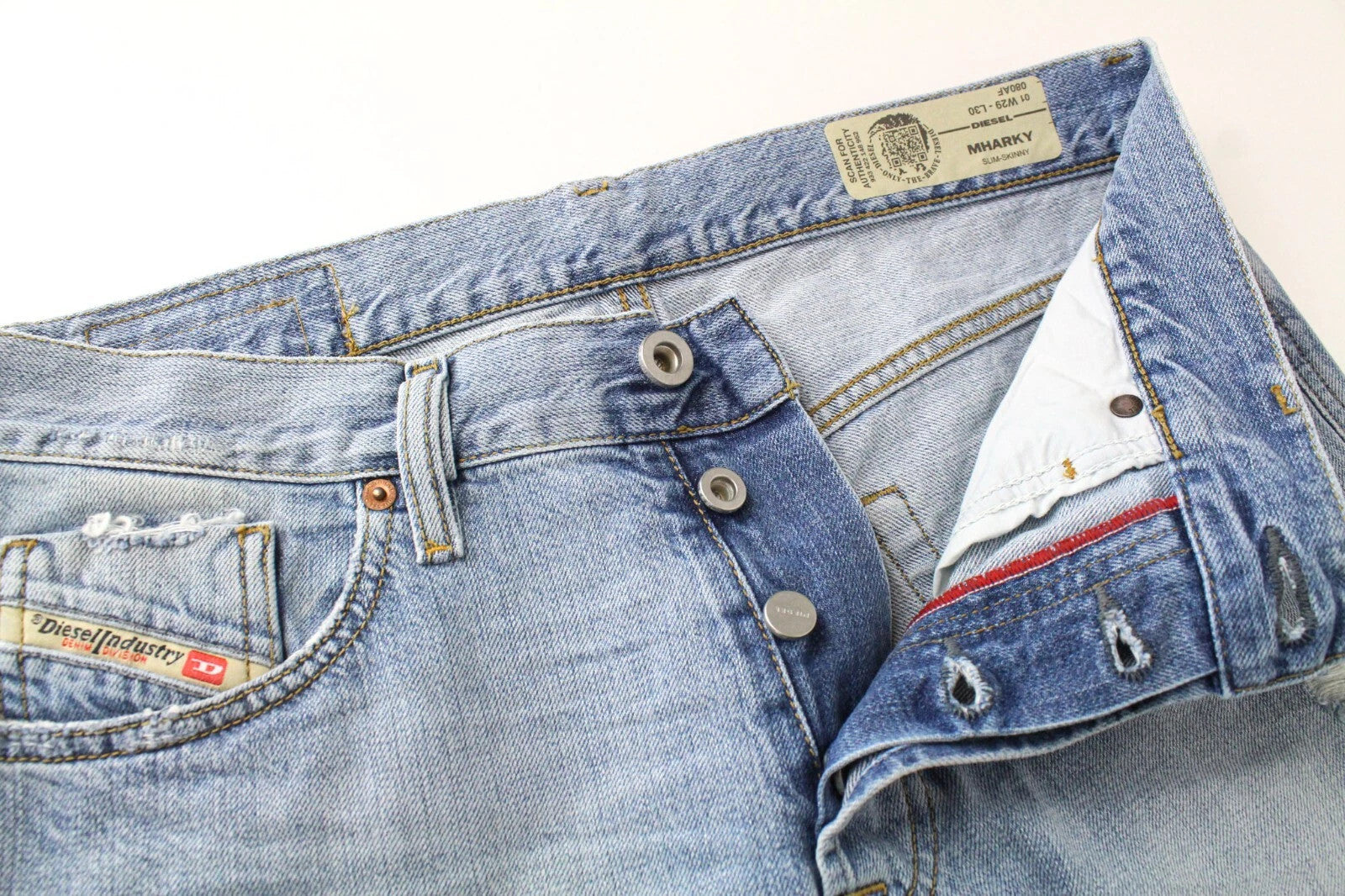 DIESEL Mharky 080AF Men's W29 L30 Distressed Blue Cotton Skinny Fit Jeans