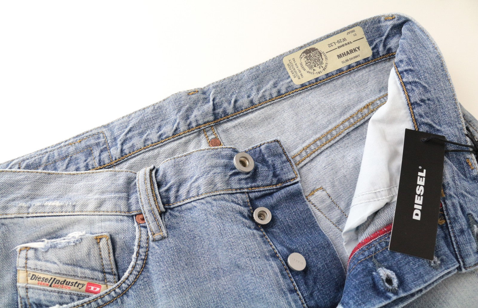 DIESEL Mharky 080AF W29/L32 Blue Cotton Ripped Skinny Fit Jeans for Men's Washed