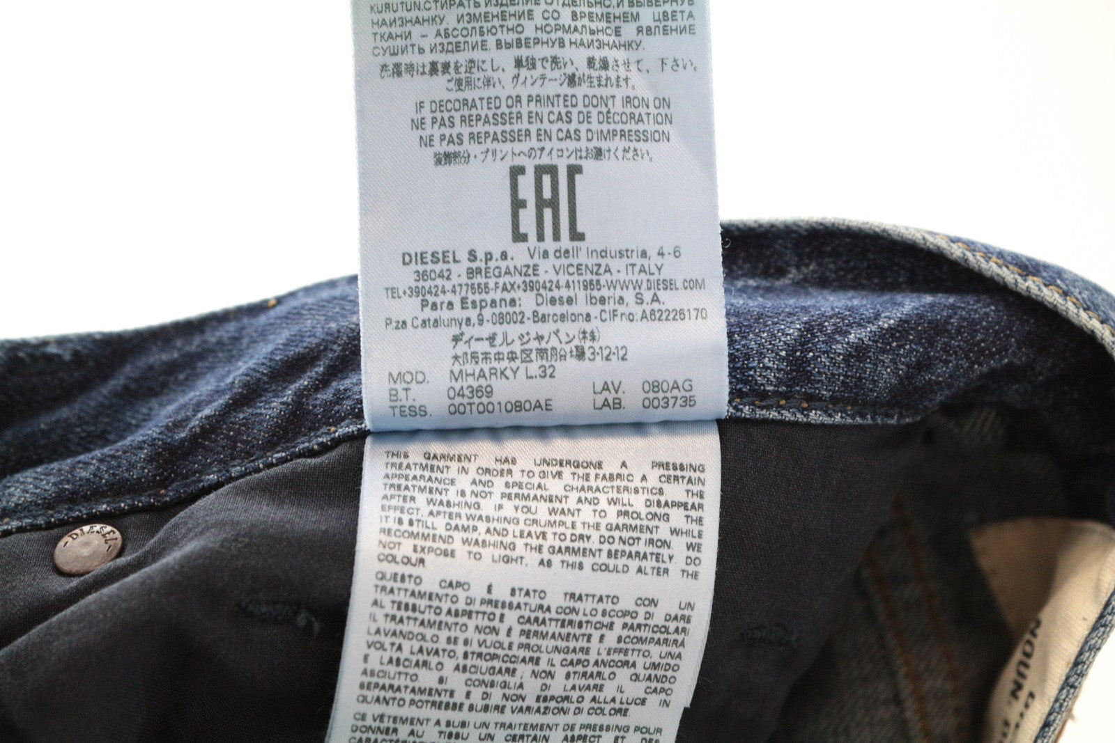 DIESEL Mharky 080AG W34/L32 Button Fly Jeans Slim Blue Cotton Skinny for Men's