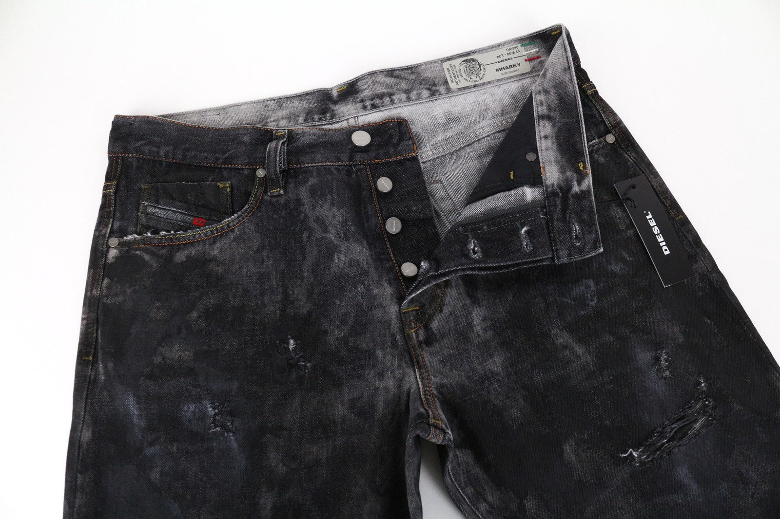 DIESEL Mharky 084WG Men's W34/L34 Grey Ripped Skinny Fit Pure Cotton Jeans