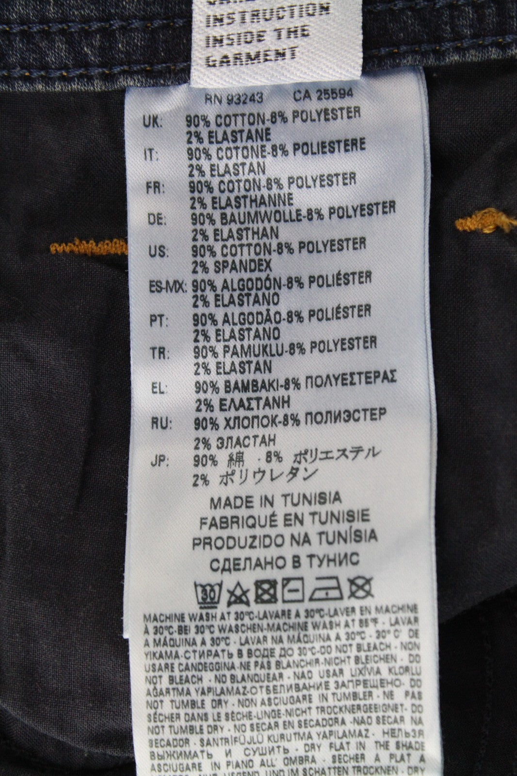 Material : 90% Cotton, 8% Polyester, 2% Elastane