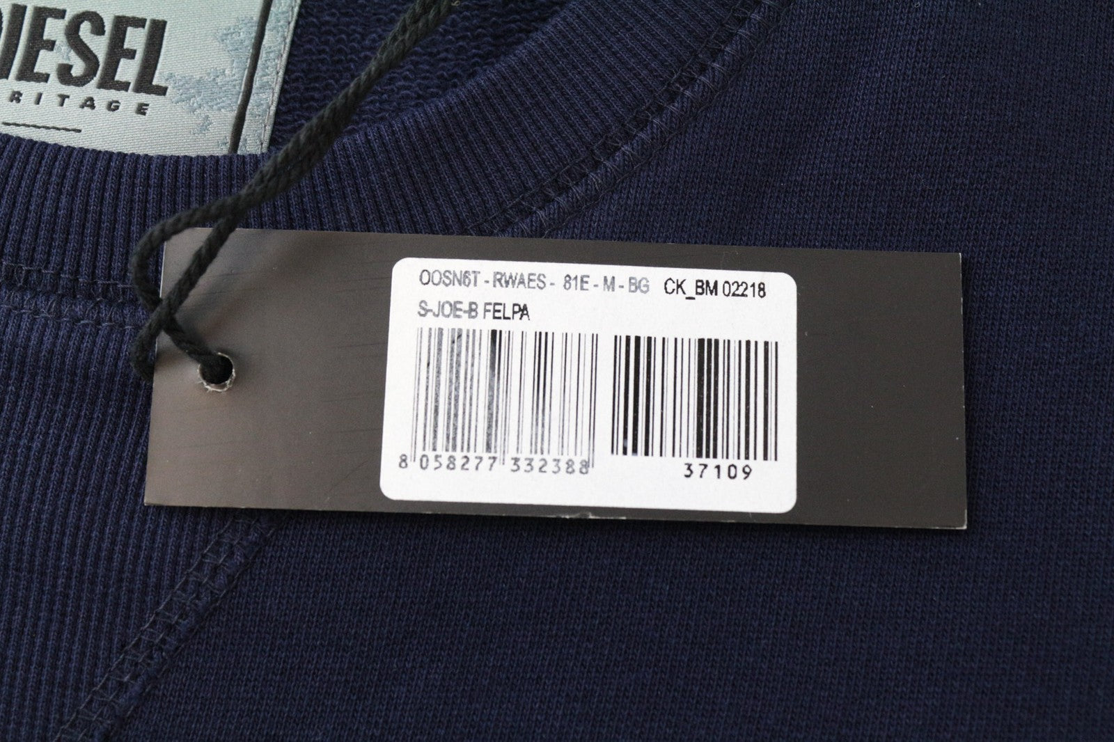 DIESEL Navy Sweatshirt M Men's Pullover Logo Long Sleeve Cotton Casual Top