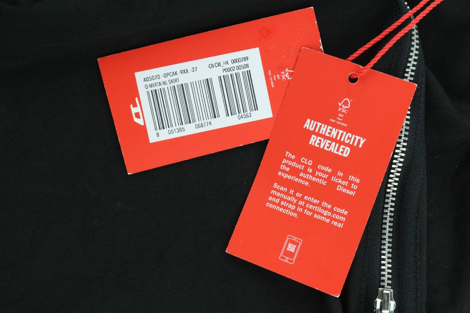 DIESEL O-Mirta-NL Women Skirt W27 Black Midi Elastic Waist Patch Pocket RRP275