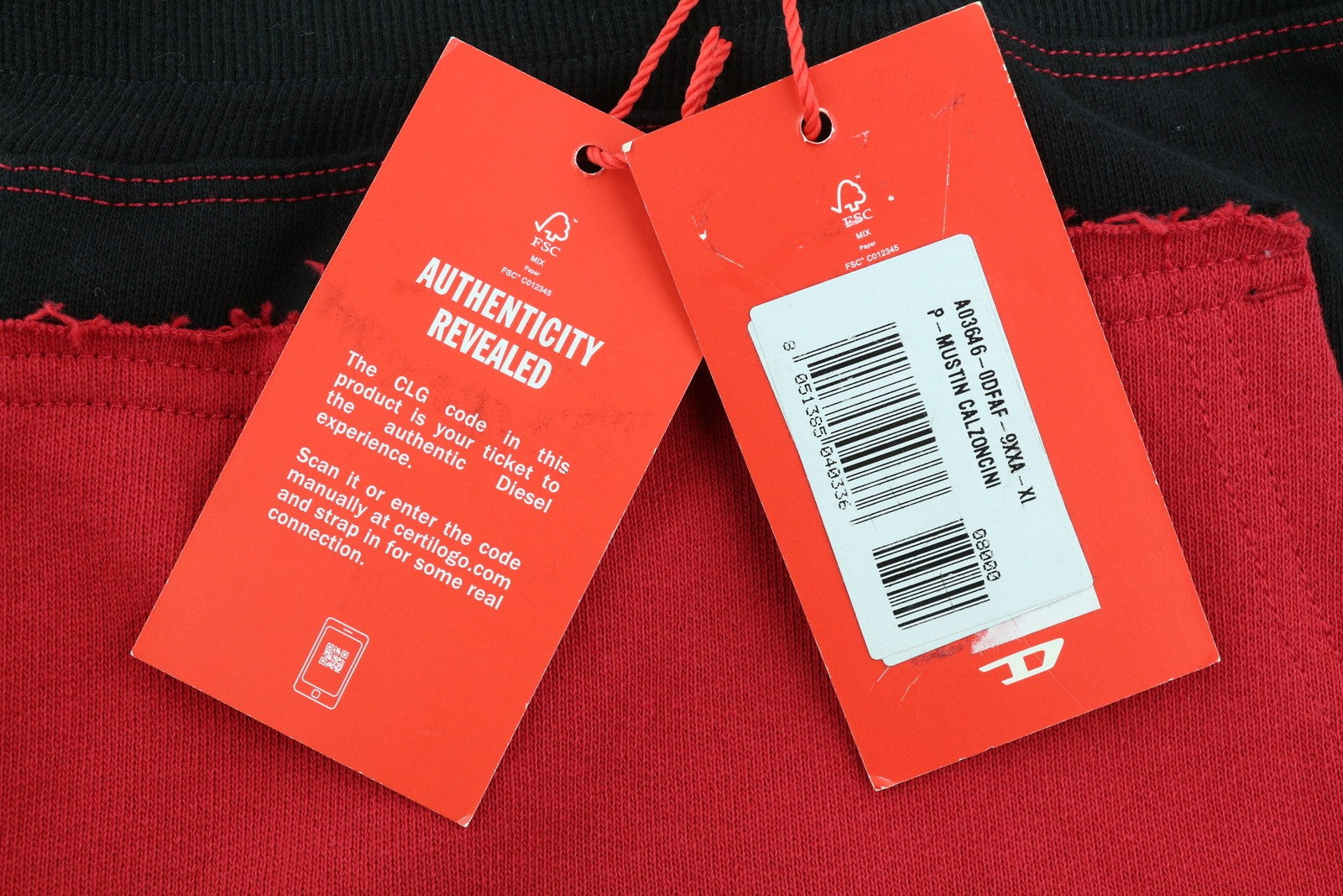 DIESEL P-Mustin Mens Shorts XL Red Printed Sweat Elastic Waist Pocket RRP€125