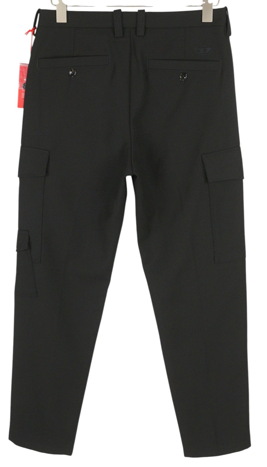DIESEL P-Rhee-Nw Men Trousers W29 Black Wool Pleated Zip Cargo RRP283