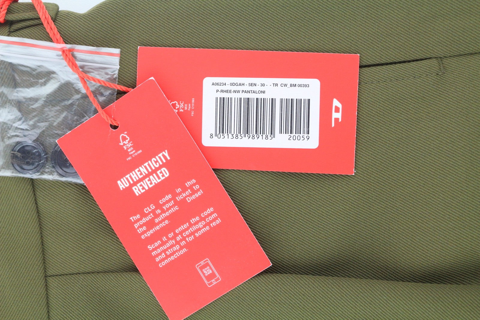 DIESEL P-Rhee-Nw Men Trousers W30 Green Wool Blend Pleated Zip Cargo RRP€283