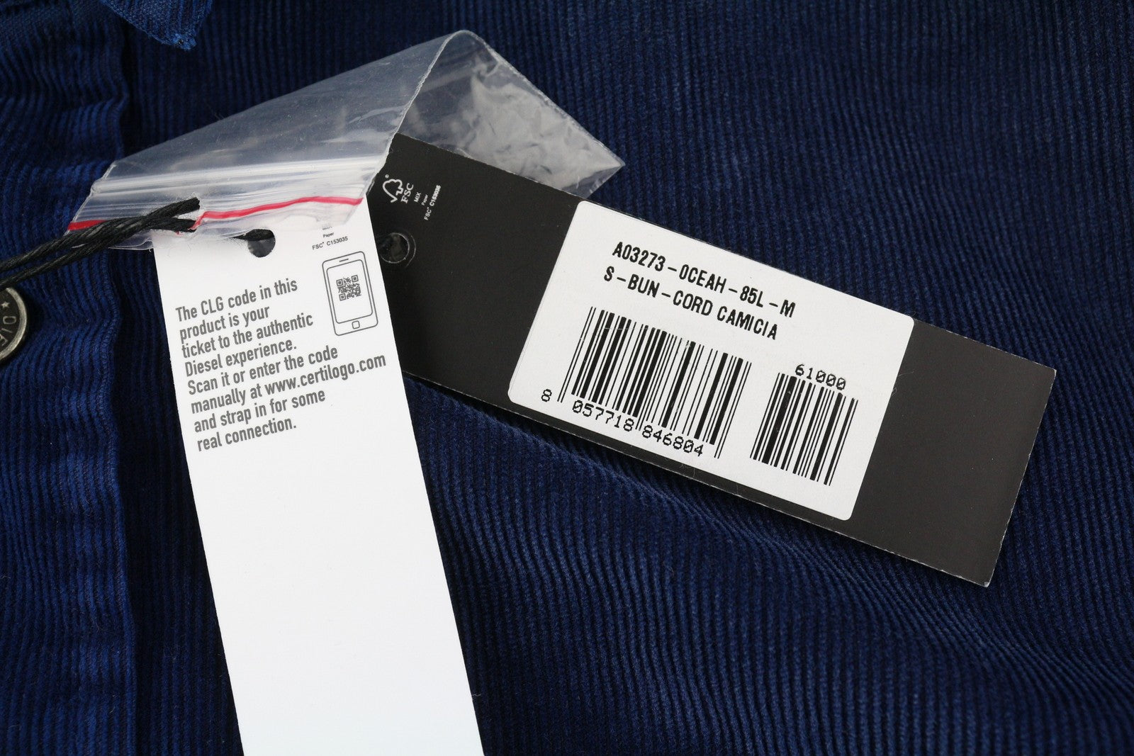 DIESEL S-Bun-Cord Men Shirt M Washed Blue Corduroy Thick Spread Snap RRP€175