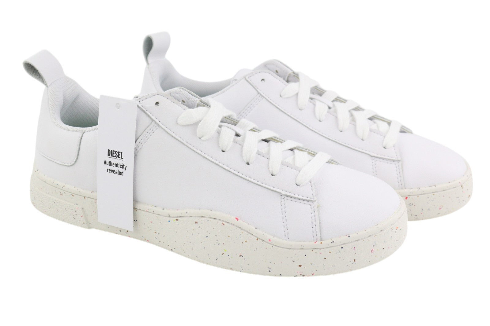 DIESEL S-Clever Low Lace Mens Sneakers EU45 White Leather Almond Toe RRP€140