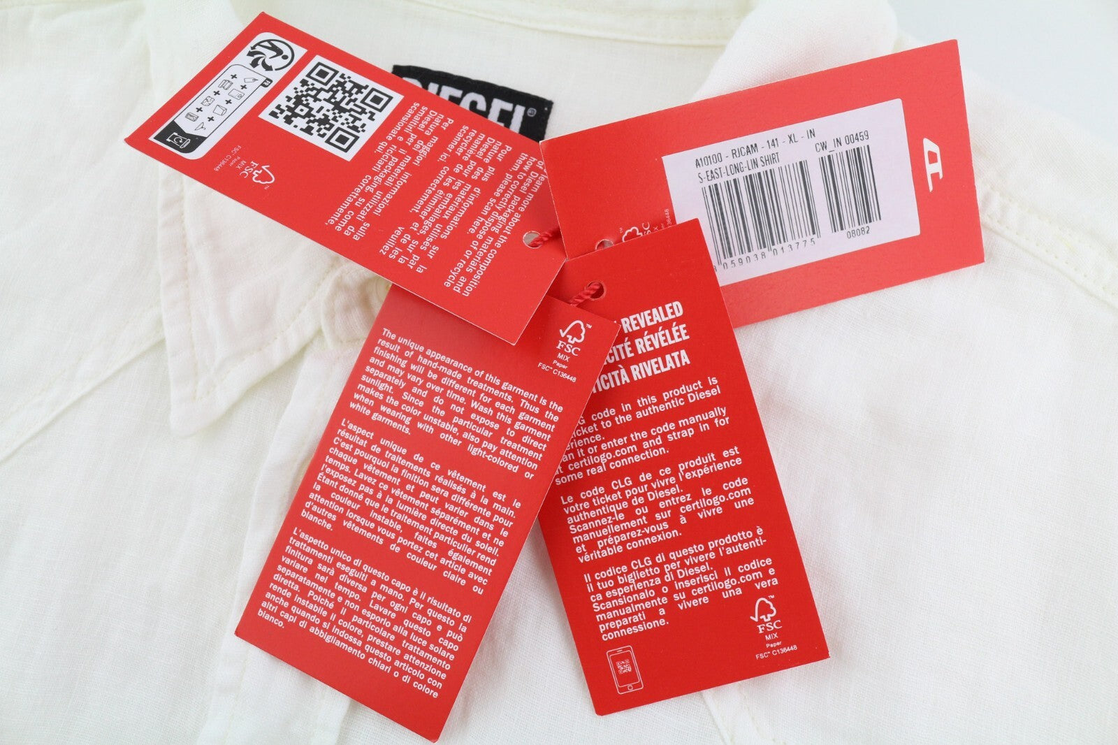DIESEL S-East-Long-Lin Men Shirt XL Western Linen Buttoned Spread Neck RRP€175