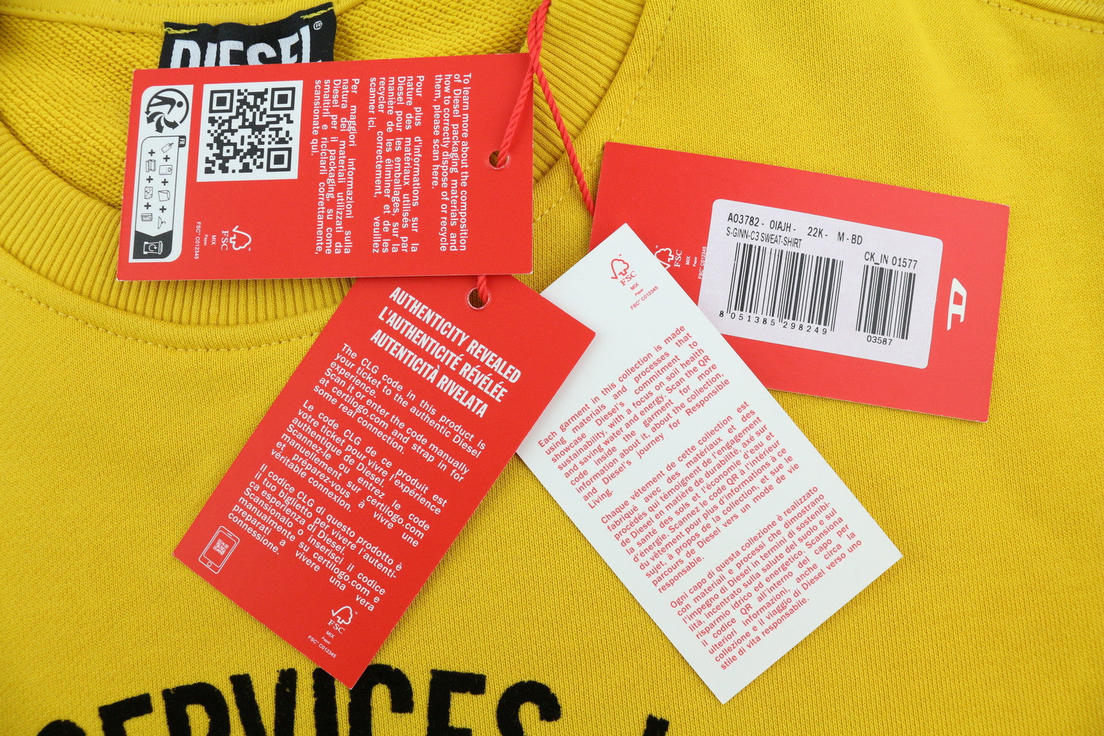 DIESEL S-Ginn-C3 Men Sweatshirt M Yellow Pullover Crew Neck Long Sleeve RRP€110
