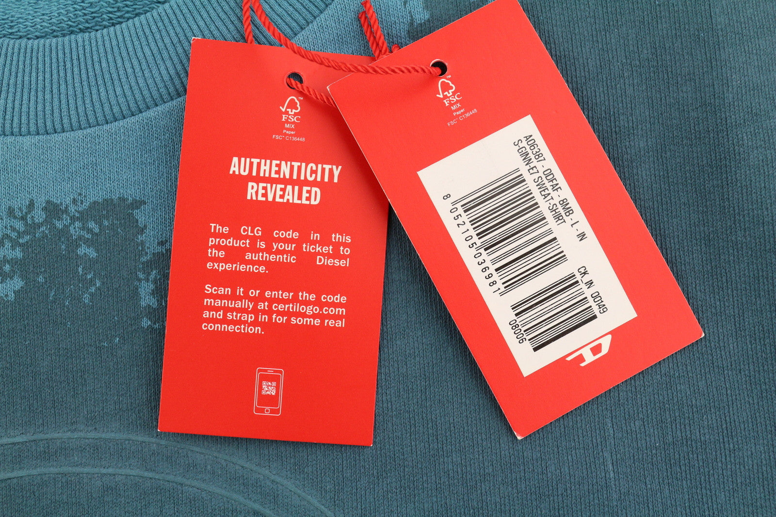 DIESEL S-Ginn-E7 Men Sweatshirt L Blue Pullover Long Sleeve Crew Collar RRP€175