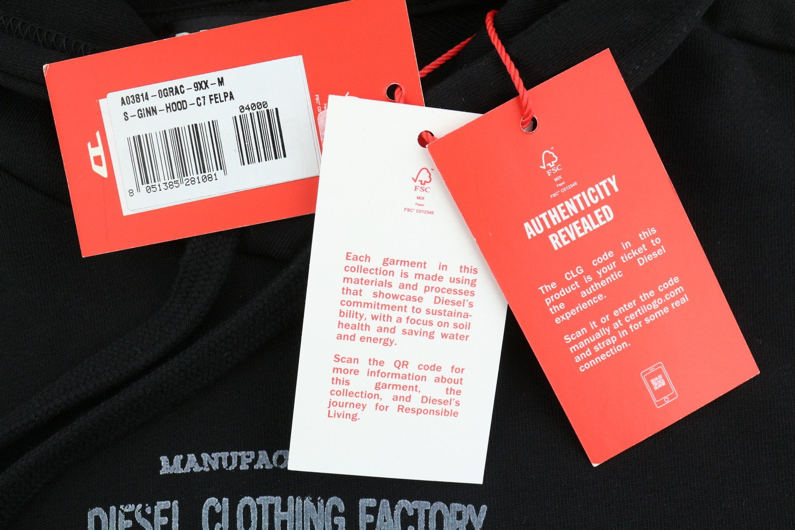 DIESEL S-Ginn-Hood-C7 Mens Hoodie M Black Kangaroo Pocket Hooded RRP€150