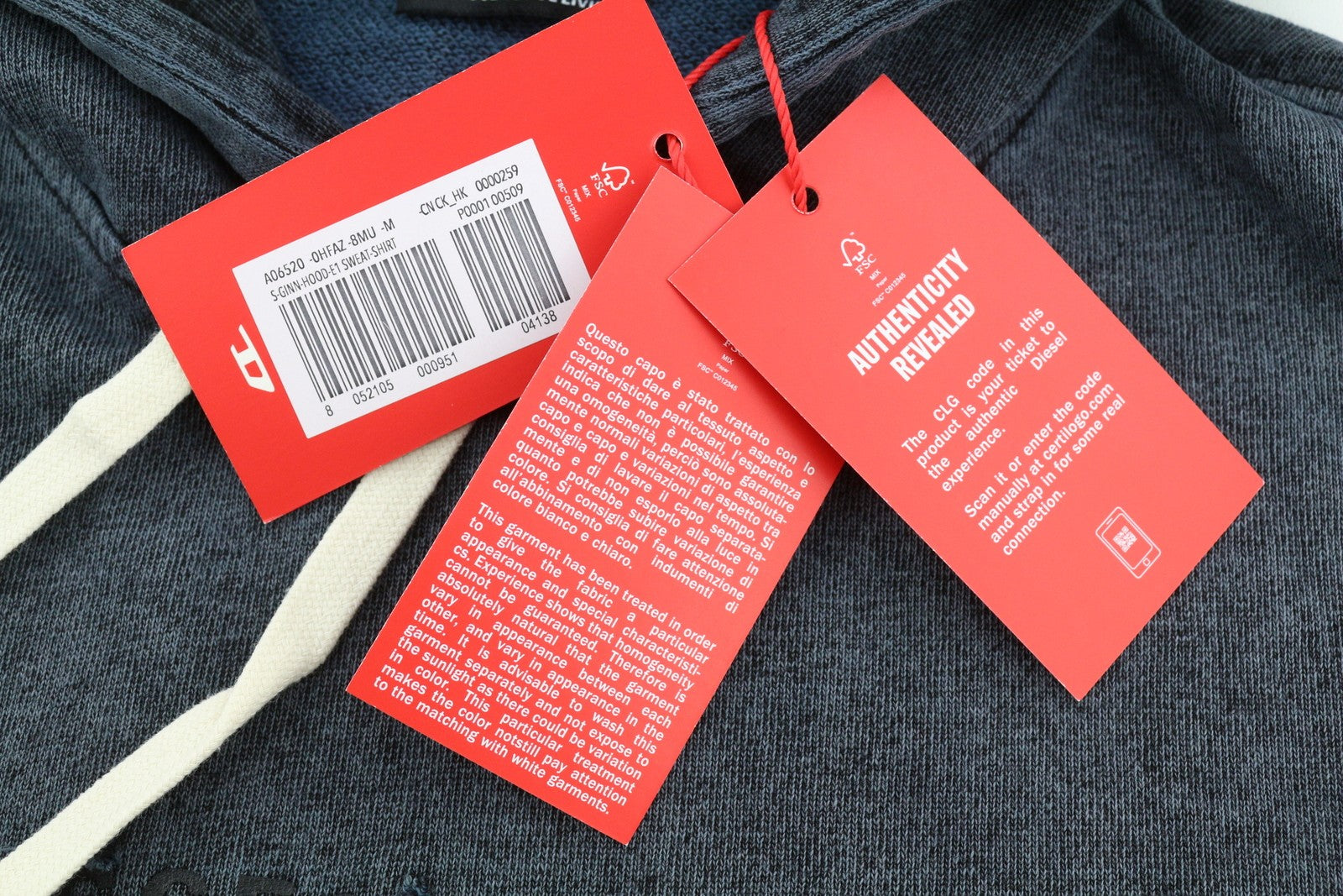 DIESEL S-Ginn-Hood-E1 Men Hoodie M Washed Grey Distress Hooded Kangaroo RRP€195