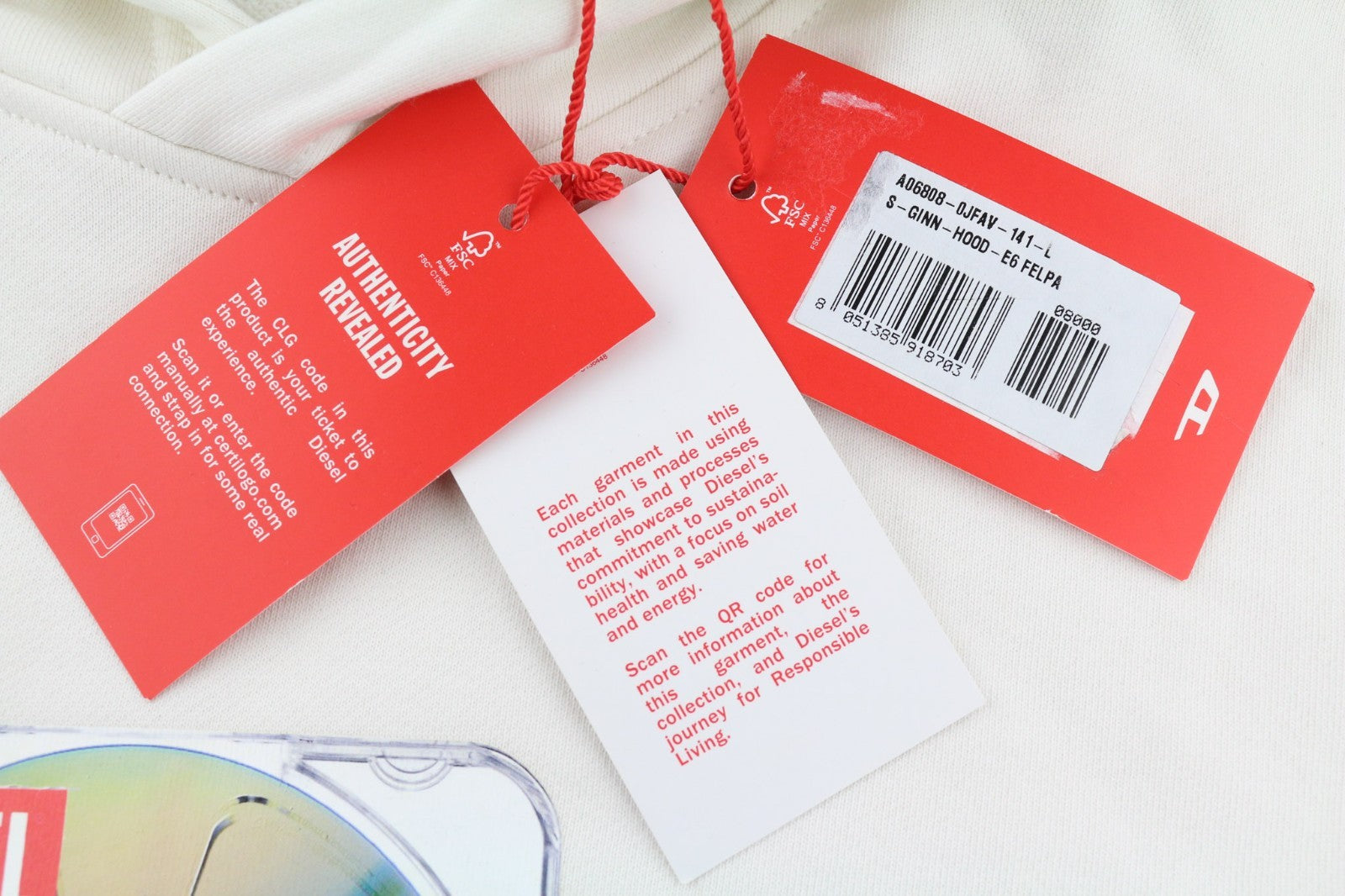 DIESEL S-Ginn-Hood-E6 Men Hoodie L Beige Pullover Logo Straps Long Sleeve RRP175