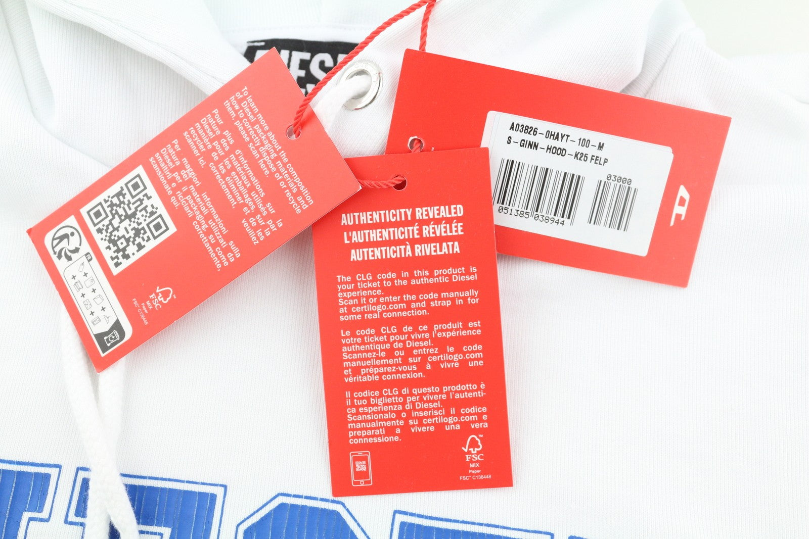 DIESEL S-Ginn-Hood-K25 Mens Hoodie M White Pullover Kangaroo Pocket RRP€125