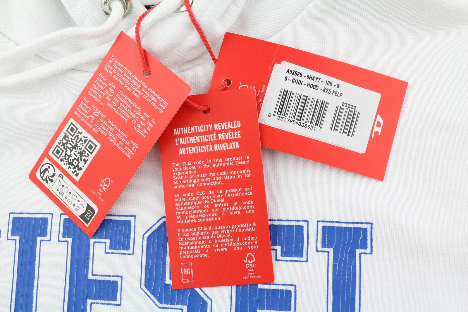 DIESEL S-Ginn-Hood-K25 Mens Hoodie S White Pullover Kangaroo Pocket RRP€125
