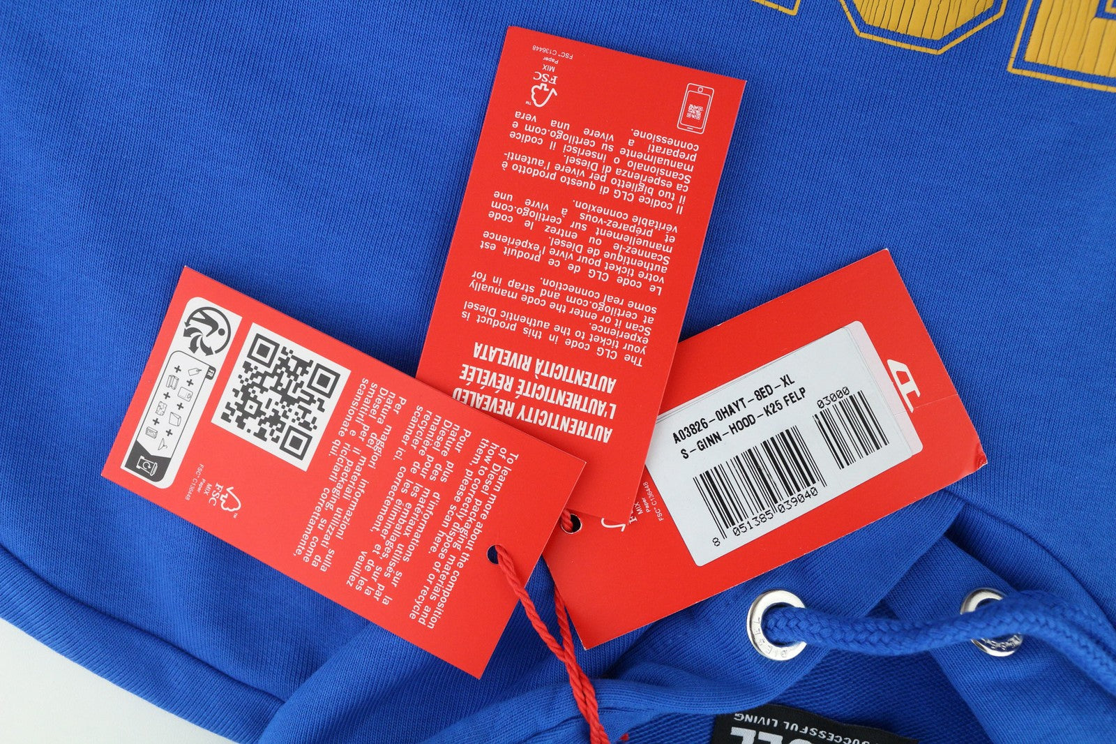DIESEL S-Ginn-Hood-K25 Mens Hoodie XL Blue Oversizedd Pullover Kangaroo RRP€125
