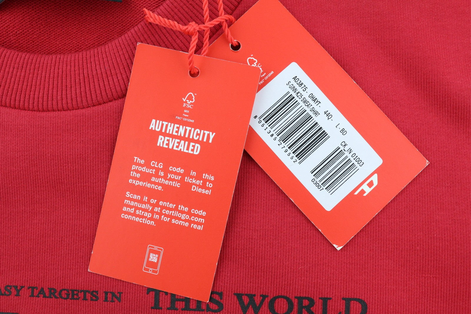 DIESEL S-Ginn-K25 Men Sweatshirt L Red Pullover Crew Neck Front Logo RRP€125