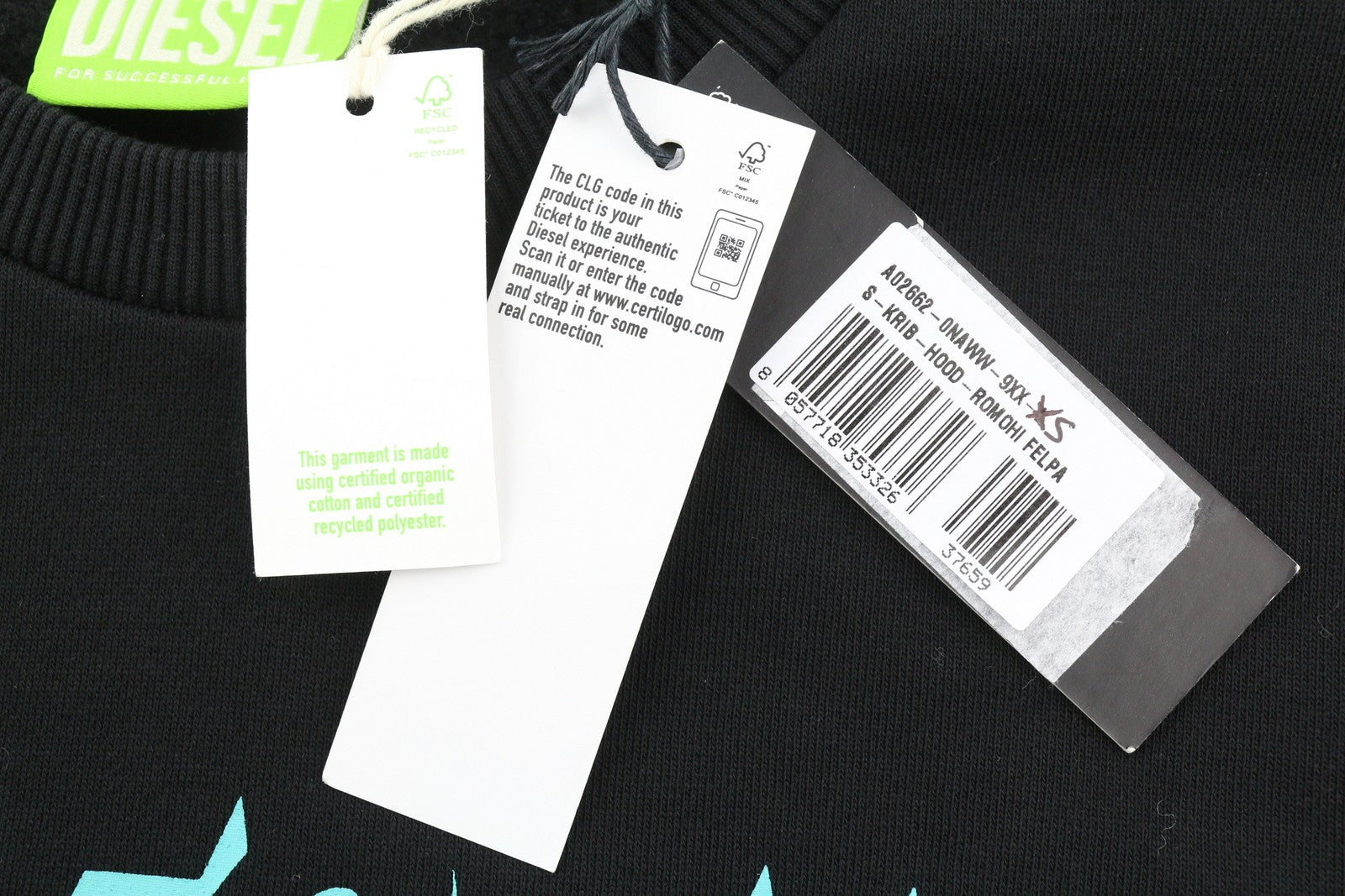 DIESEL S-Girk-A74 Men Sweatshirt XS Black Pullover Crew Neck Front Logo Unlined