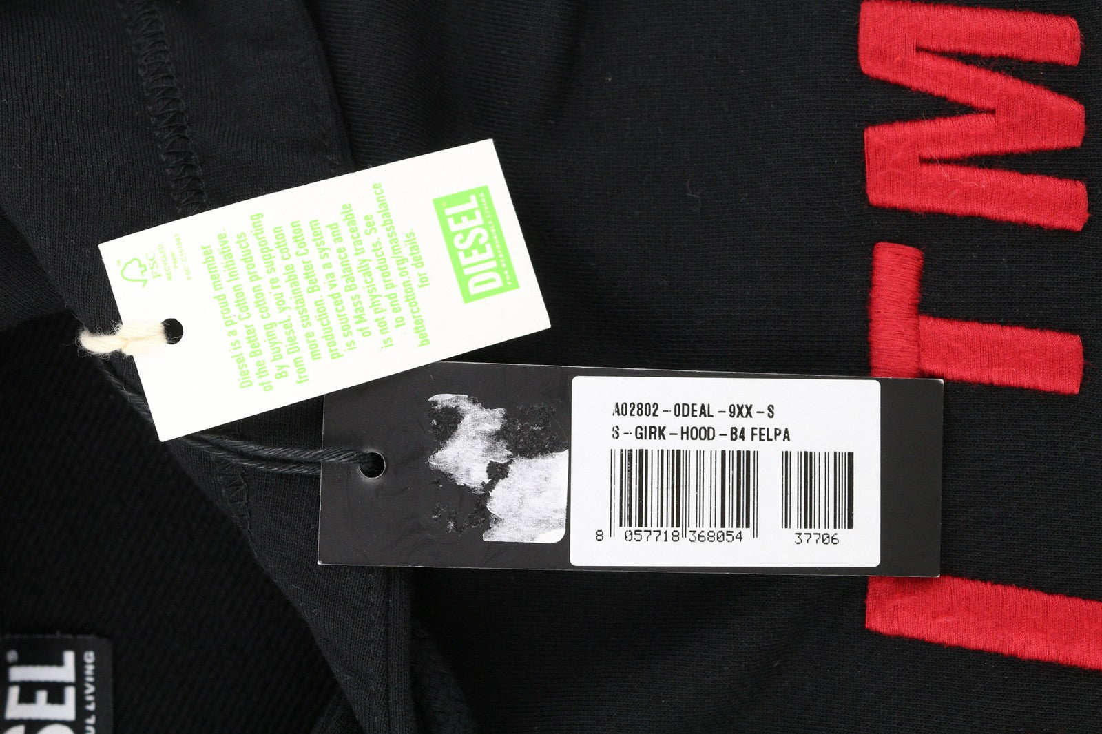 DIESEL S-Girk-Hood-B4 Mens Hoodie S Pullover Oversizedd Kangaroo Black RRP€150