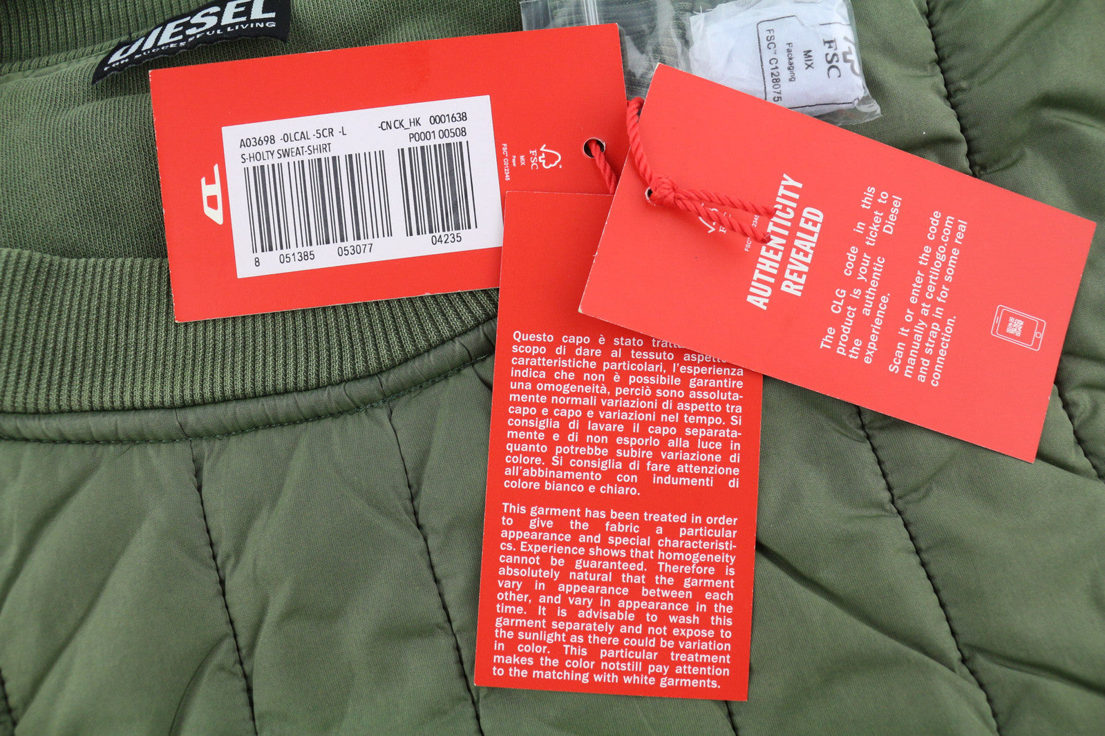 DIESEL S-Holty Men Sweatshirt L Green Pullover Padded Quilted Crew Neck RRP€225