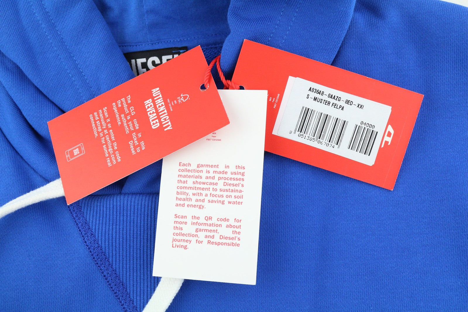 DIESEL S-Muster Mens Hoodie 2XL Blue Oversized Pullover Hooded Pocket RRP€150