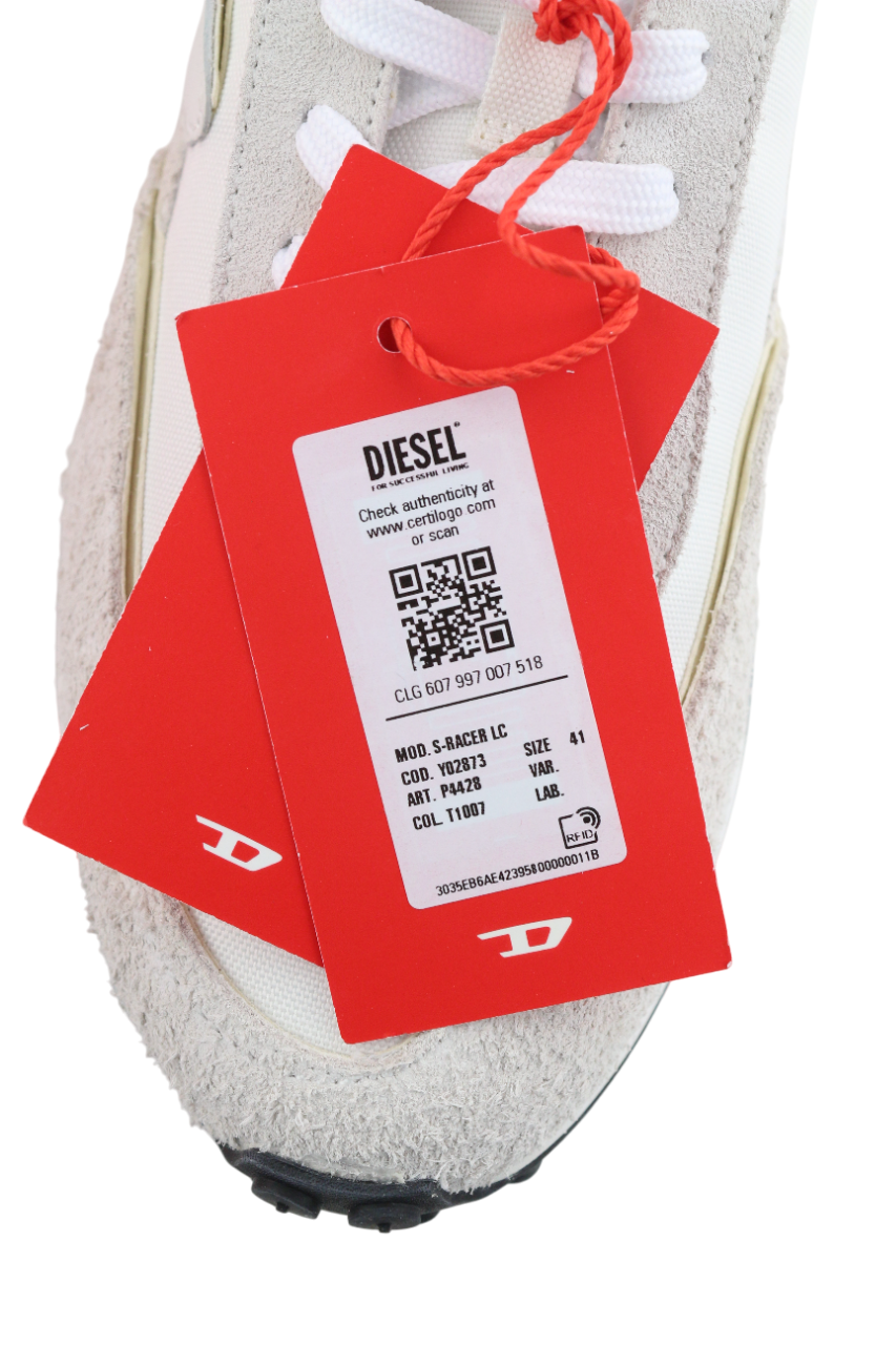 DIESEL S-Racer-Lc Mens Sneakers EU41 White Leather RRP€195 Lace Trainers