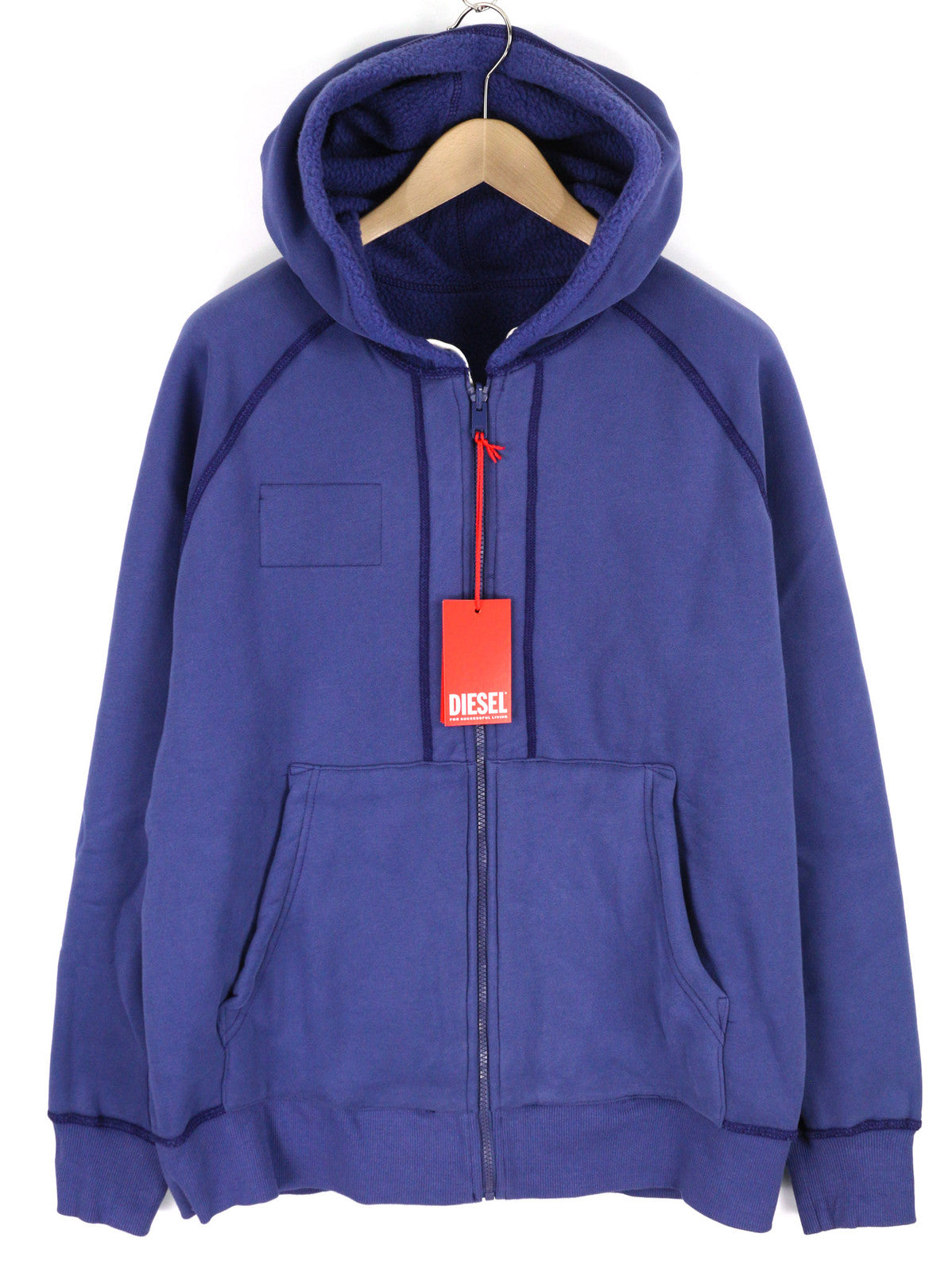 DIESEL S-Rummes-Zip-Rev Men Hoodie L Blue RRP€250 Fleece Pockets Oversized