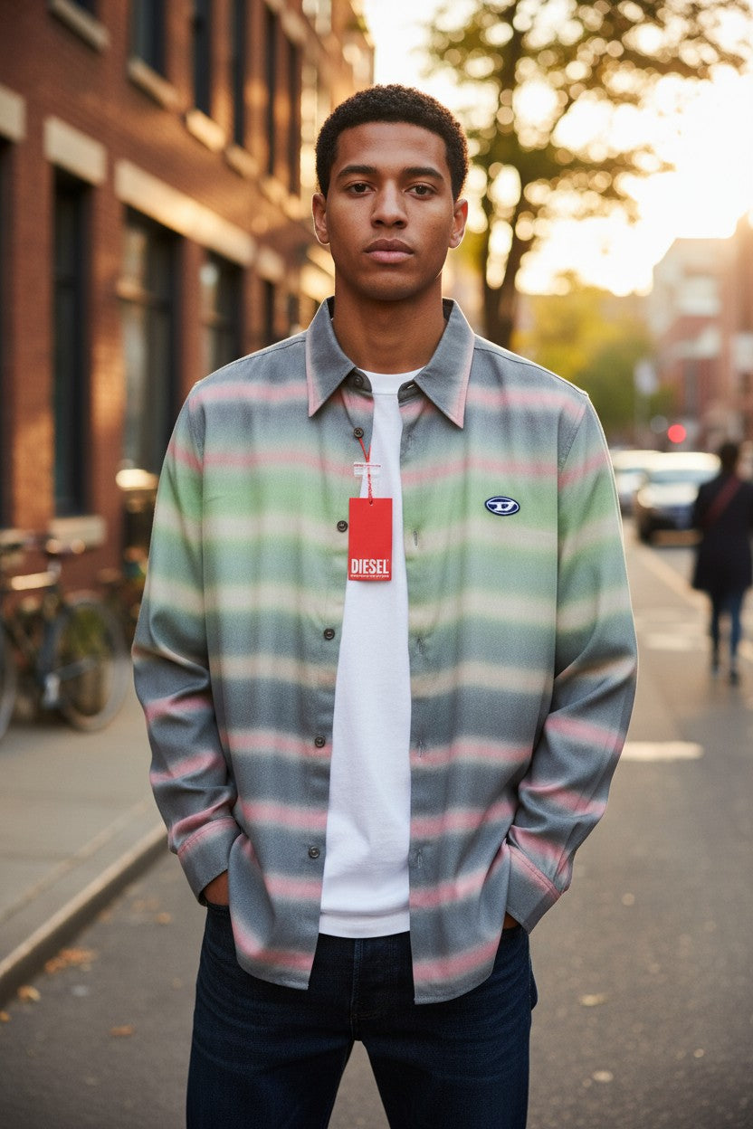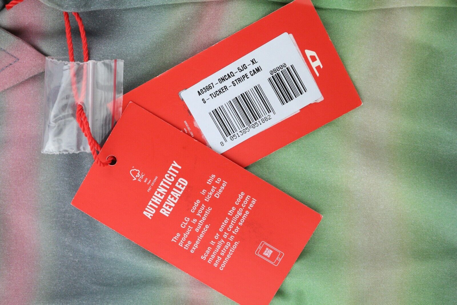 DIESEL S-Tucker-Stripe Men Shirt XL RRP150 Patterned Button Up Spread Collar