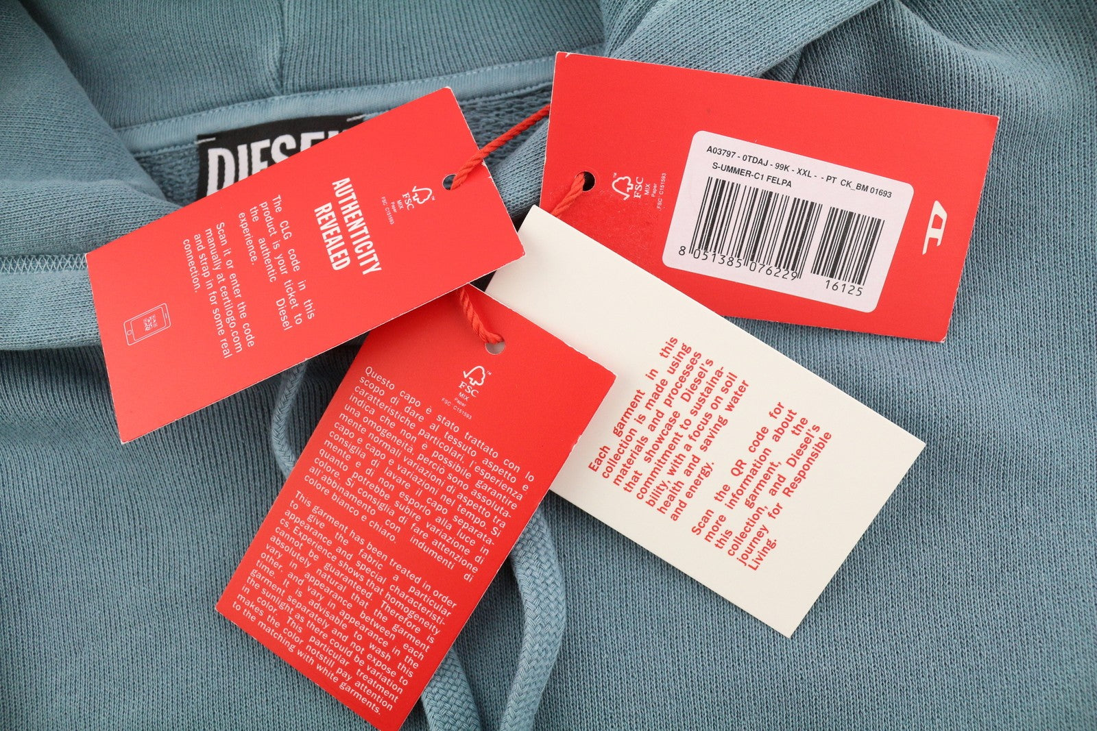 DIESEL S-Ummer-C1 Mens Hoodie 2XL Washed Blue Oversized Kangaroo Pocket RRP€250