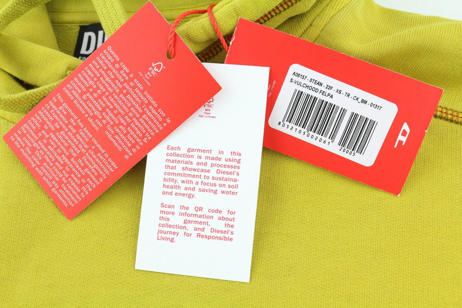 DIESEL S-Vulchood Mens Hoodie XS Mustard Pullover Oversizedd Kangaroo RRP€250