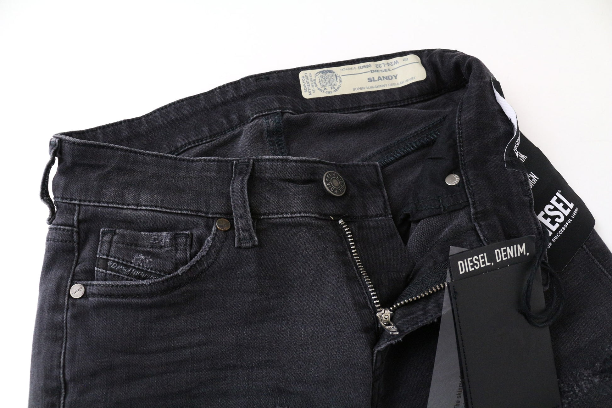 DIESEL Slandy 069GI Women's Jeans W24/L32 Grey Girls Slim Super Skinny Distress