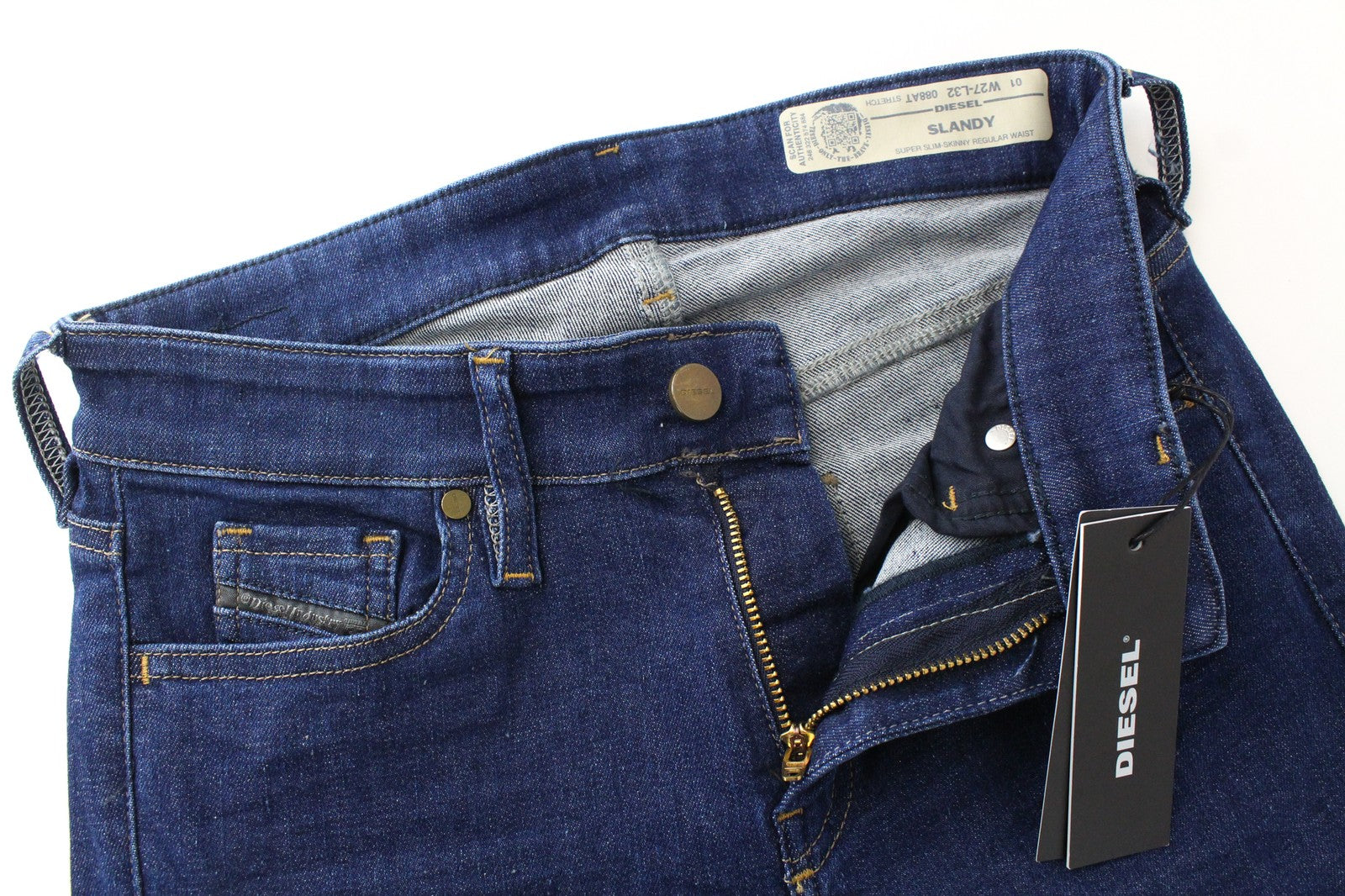DIESEL Slandy 088AT Women's W27/L32 Blue Jeans Super Skinny Distressed Hems
