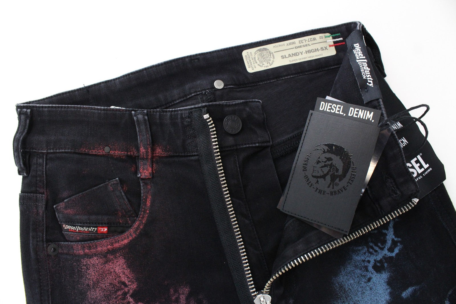 DIESEL Slandy-High-SX 069IY Women's W27/L32 Skinny Navy Red Washed