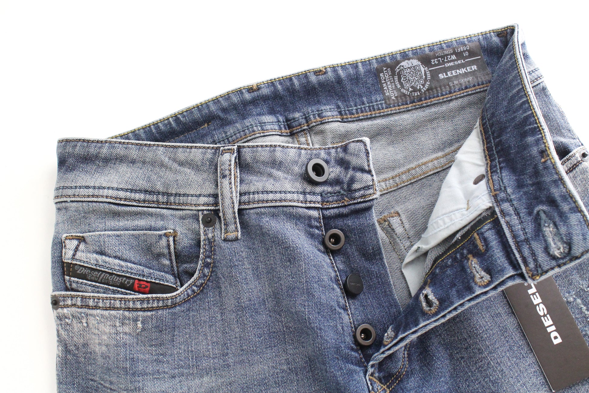 DIESEL Sleenker 069FI Men's Jeans W27 L32 Slim Stretch Fit Blue Washed Denim