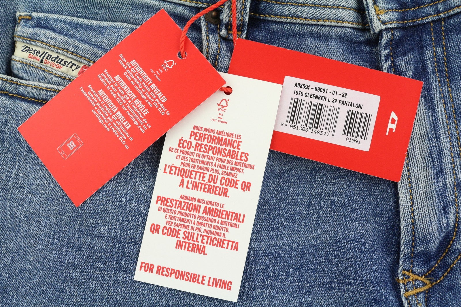 DIESEL Sleenker-Z 09C01 Men's W32/L32 Skinny Washed Blue Zip Fly Denim RRP195
