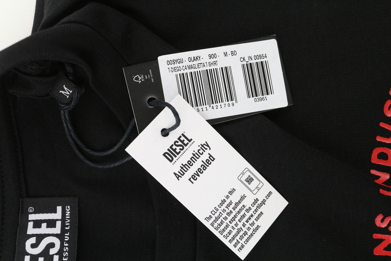 DIESEL T-Diego-C4 Men T-Shirt M Black Short Sleeved Crew Neck Front Logo Tricot