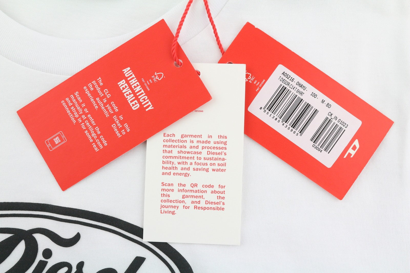 DIESEL T-Diegor-C14 Mens T-Shirt M White Short Sleeve Crew Neck Front