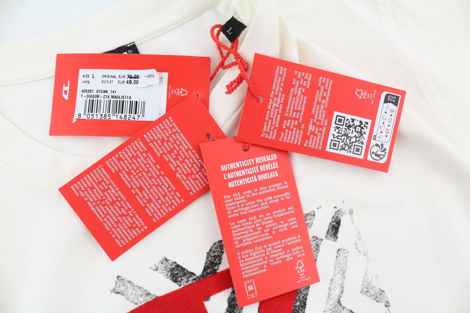 DIESEL T-Diegor-C16 Mens T-Shirt L Off White Short Sleeve Crew Collar Tricot