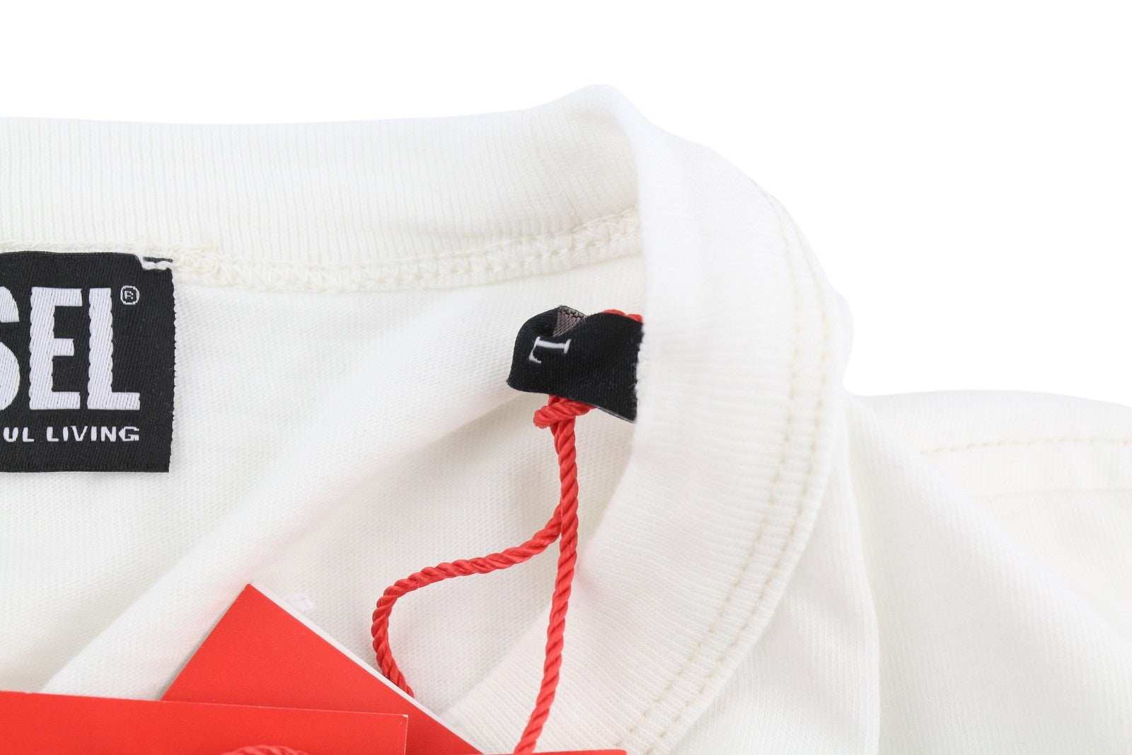 DIESEL T-Diegor-E2 Men T-Shirt L White Short Sleeved Crew Tricot Cotton Logo