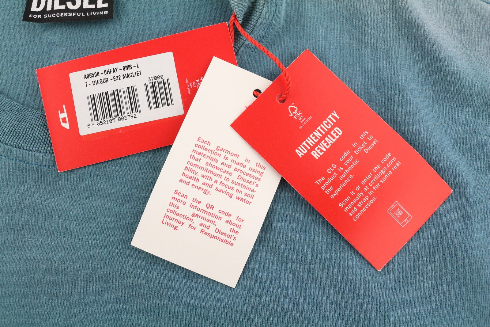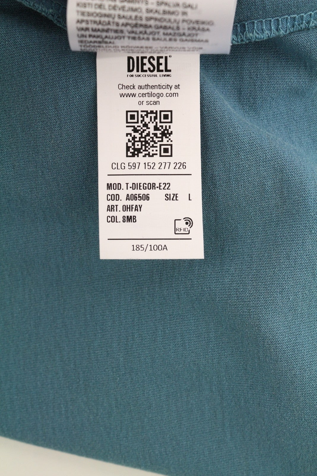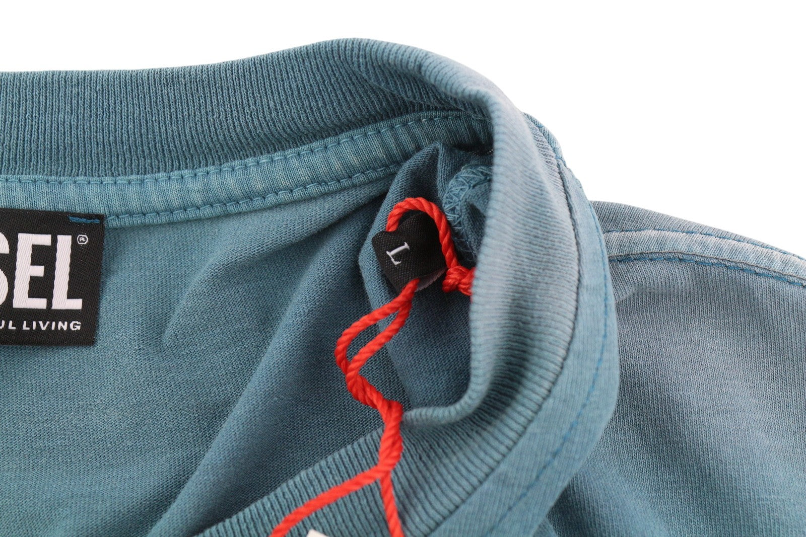 DIESEL T-Diegor-E22 Mens T-Shirt L Blue Fade Effect Crew Collar Short Sleeve