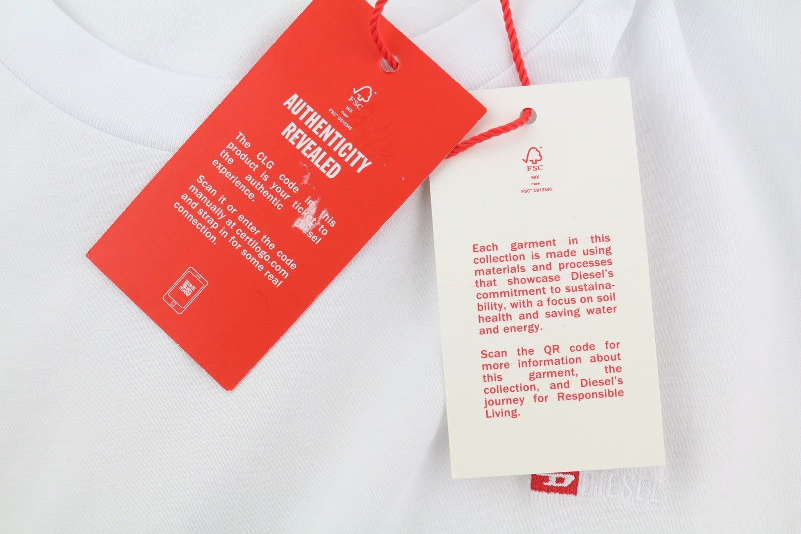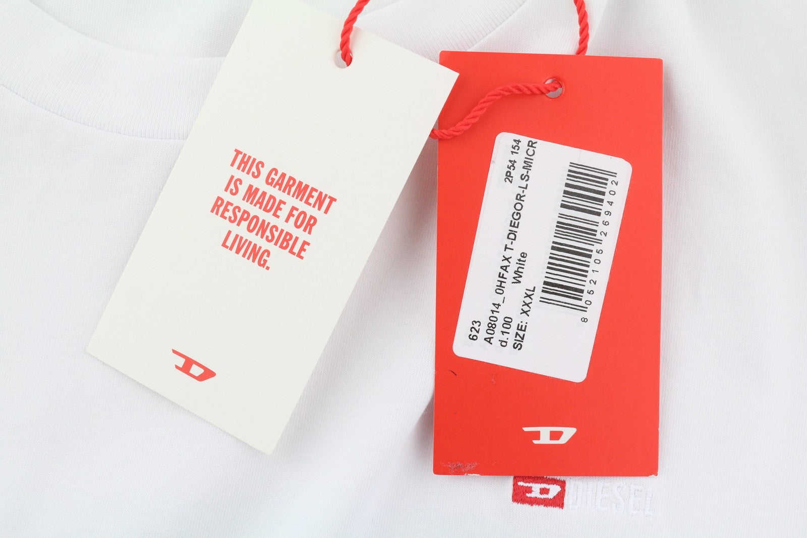 DIESEL T-Diegor-Ls-Microdiv Men T-Shirt 3XL White Long Sleeve Crew Neck Tricot