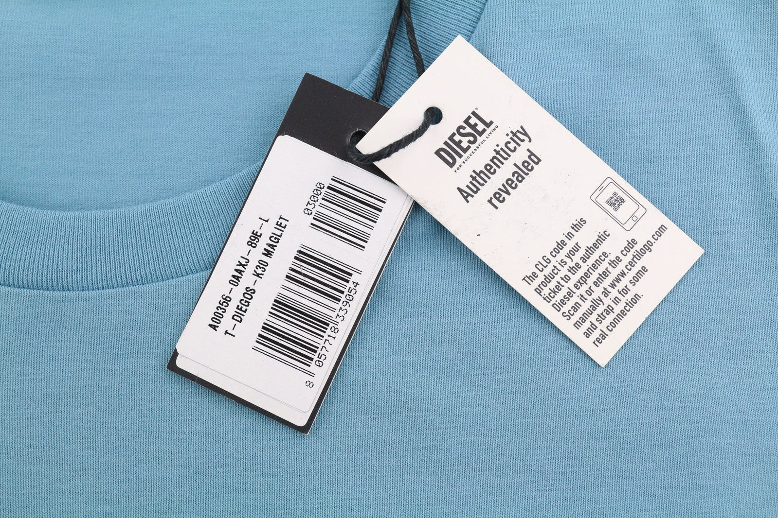 DIESEL T-Diegos-K30 Men T-Shirt L Short Sleeve Crew Neck Tricot Casual Blue