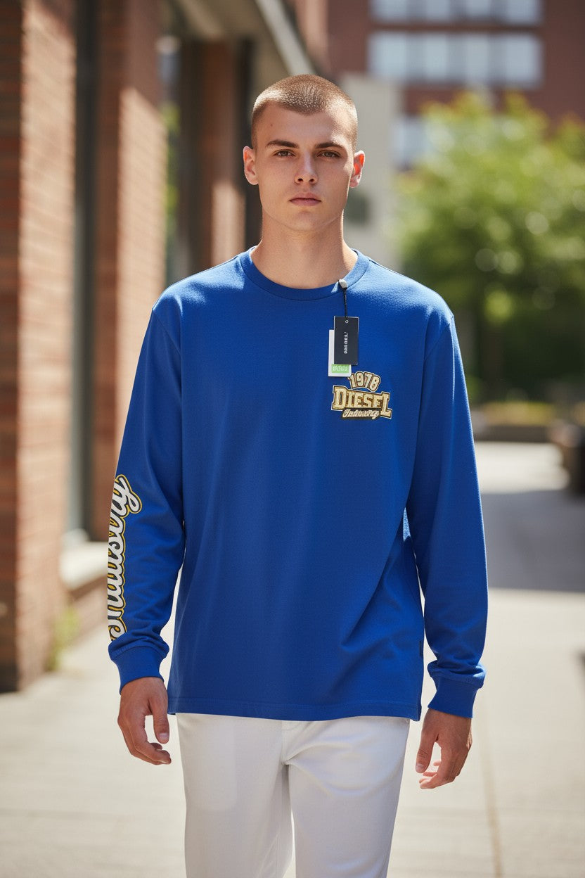 DIESEL T-Diegos-LS-K27 Men T-Shirt M Mid Blue Pullover Crew Collar